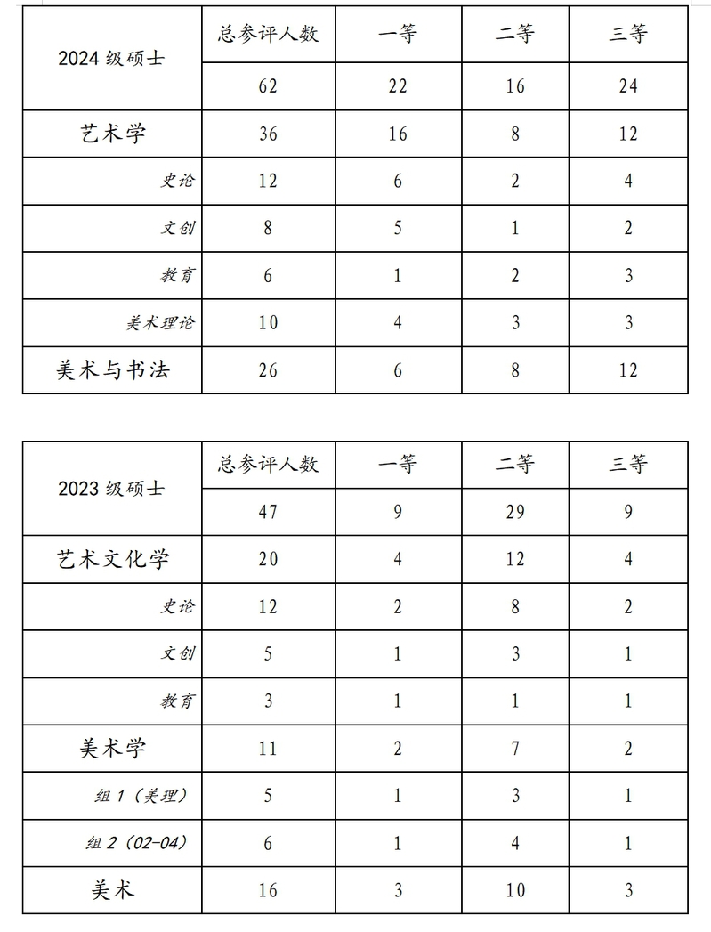 3.2024级硕士:推荐免试硕士新生参评硕士生一等学业奖学金;全国统考的非在职硕士新生按照23比例获得二等、三等学业奖学金,以研究生入学考试成绩为准(以初试分数排序;若有同分,以初试+复试成绩排序)。