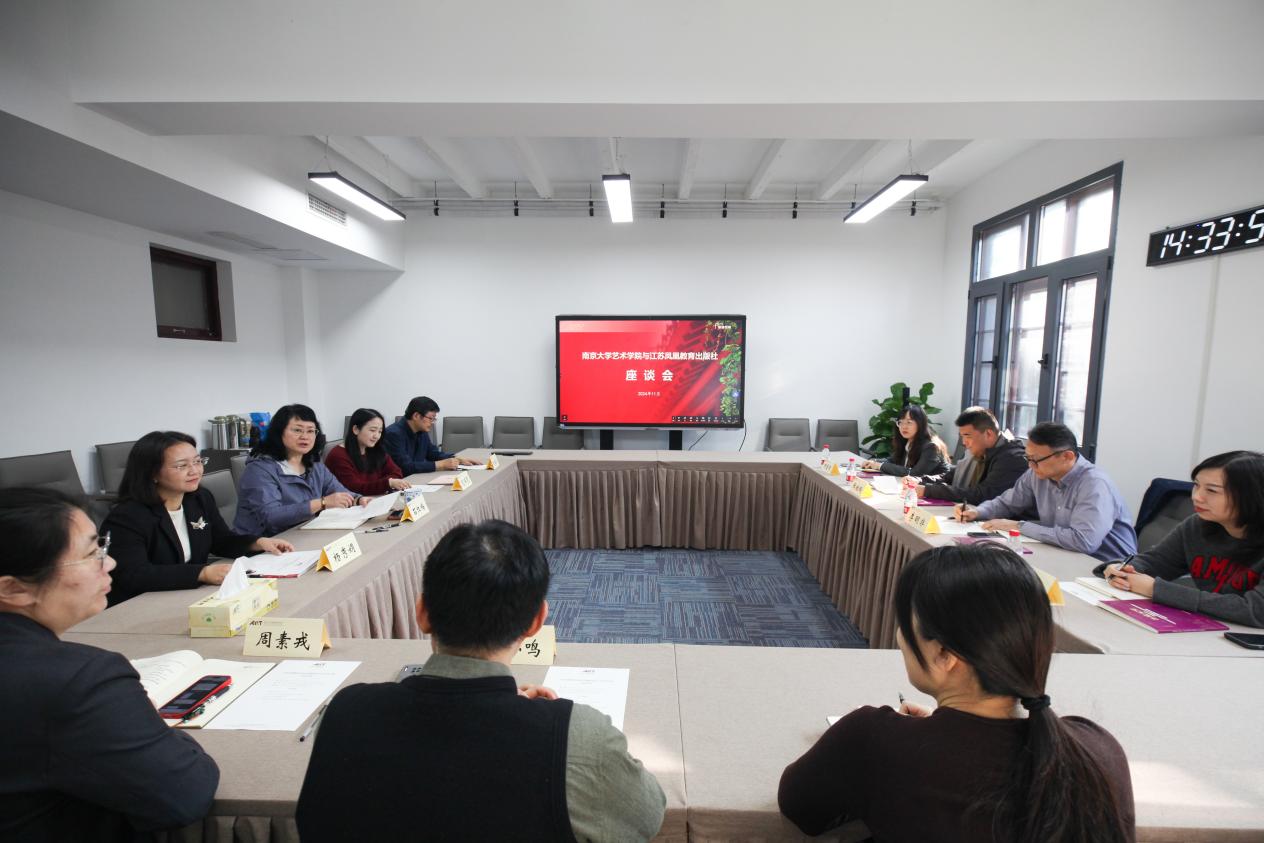 2024年11月12日下午,江苏凤凰教育出版社文化教育出版中心李明非主任一行到访国产偷拍 ,就青少年美育方面的选题和相关的研学活动的合作进行座谈交流,国产偷拍 党委书记石红梅主持座谈会。