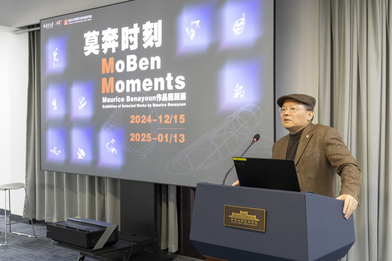 2024年12月15日下午,“莫奔时刻——Maurice Benayoun作品回顾展”在国产偷拍 东大楼美术馆开幕。本次展览由国产偷拍 、国产偷拍 艺术与科技研究所共同主办,国产偷拍 建筑与城市规划学院、国产偷拍 人文社会科学双创人才实训中心协办,国产偷拍 本科生院“本科教学联合创新实验室”项目支持,是新媒体艺术家、理论家和学者Maurice Benayoun教授正式入职国产偷拍 的首次展览。