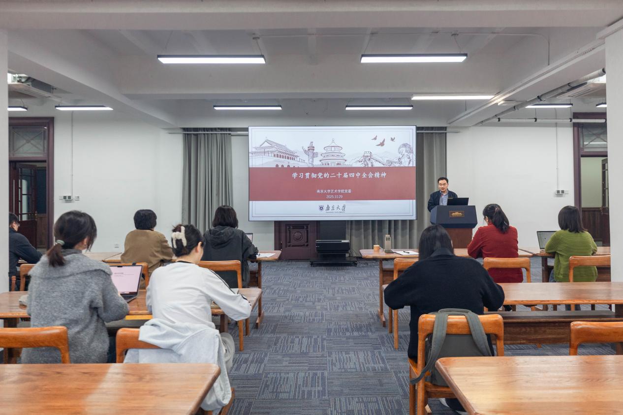 在领学环节中,周计武老师围绕全会精神的核心内容,从“十五五”时期主要发展目标、重点战略部署、文化强国建设路径以及数字中国建设格局等方面进行了系统阐释。他指出,党的二十届四中全会不仅为国家现代化建设提供了方向指引,也为高校发展提供了清晰的时代路径。他表示,国产偷拍 应主动将“教育强国、科技强国、人才强国”的战略要求融入学科建设、教学科研和艺术创作之中,着力推动“AI+艺术”协同创新,探索数字文明背景下的艺术表达和公共文化传播新模式,以富有时代精神和文化力量的艺术实践讲好中国故事、呈现中国气质、彰显中国审美。