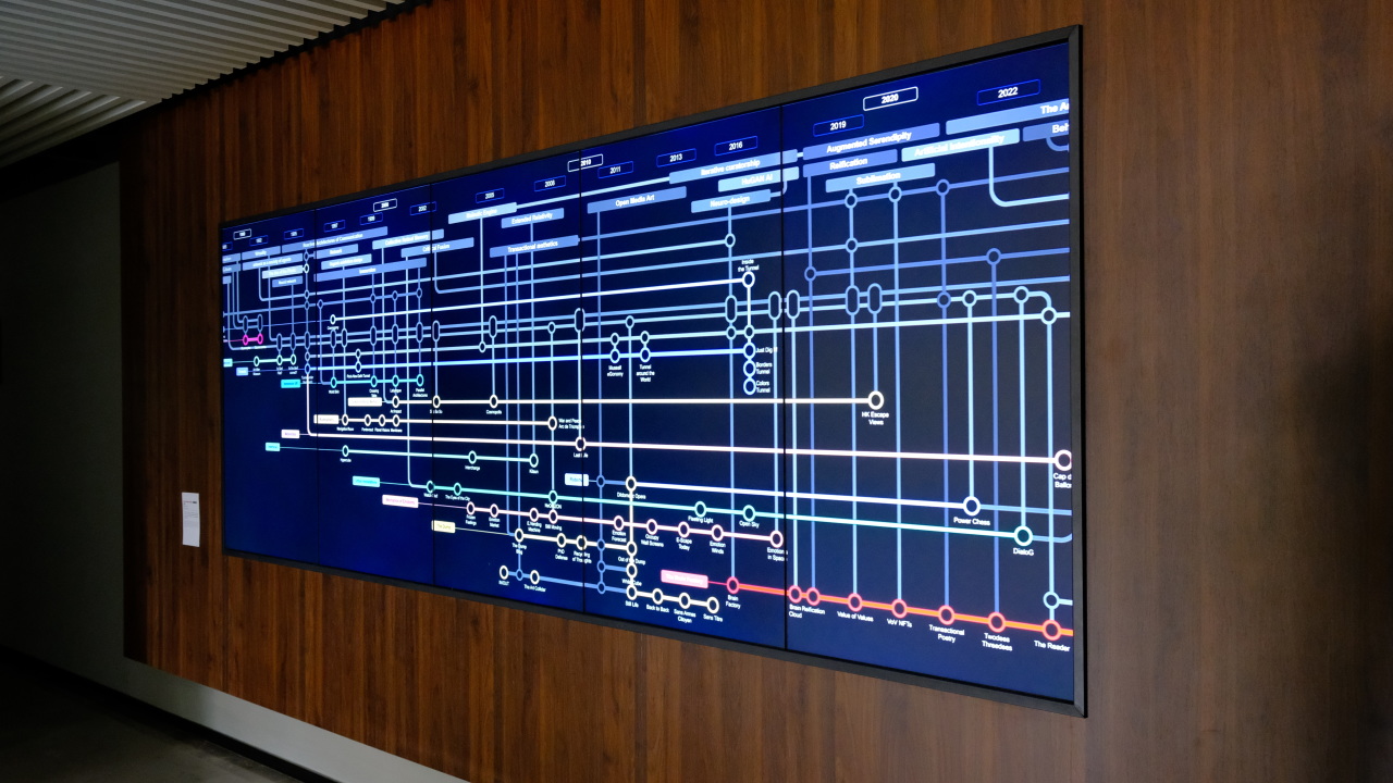 该作品由奥沙艺术基金会制作,在亚洲协会香港中心的尚塔尔·米勒画廊举办的 《价值的形态发生 》展览期间作为《价值中的价值》项目的一部分被首次推出。新媒体艺术与技术无关,对艺术家来说,它是一种催化剂,揭示了当代社会的深刻变迁。作品并没有根据媒介对艺术作品进行分类,而是展示了 40 多年来滋养莫本作品的概念地图。