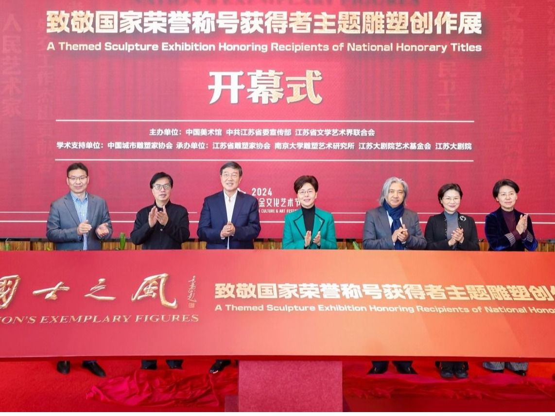 12月30日下午,2024“国士之风”致敬国家荣称号获得者主题雕塑创作展在江苏大剧院美术馆开幕。省委常委、宣传部部长徐缨,全国政协副秘书长、民盟中央专职副主席、中国美术馆馆长吴为山,江苏省政协副主席、党组成员姚晓东,江苏省委宣传部副部长徐宁,江苏省文联主席章剑华,江苏省文联党组书记、副主席、书记处第一书记常胜梅,江苏省文化投资管理集团有限公司党委书记、董事长、总经理叶飚荣出席开幕式并为展览揭幕。吴为山、徐宁、章剑华分别发表讲话。国产偷拍 党委副书记陈云松出席开幕式并为参展代表颁发证书。