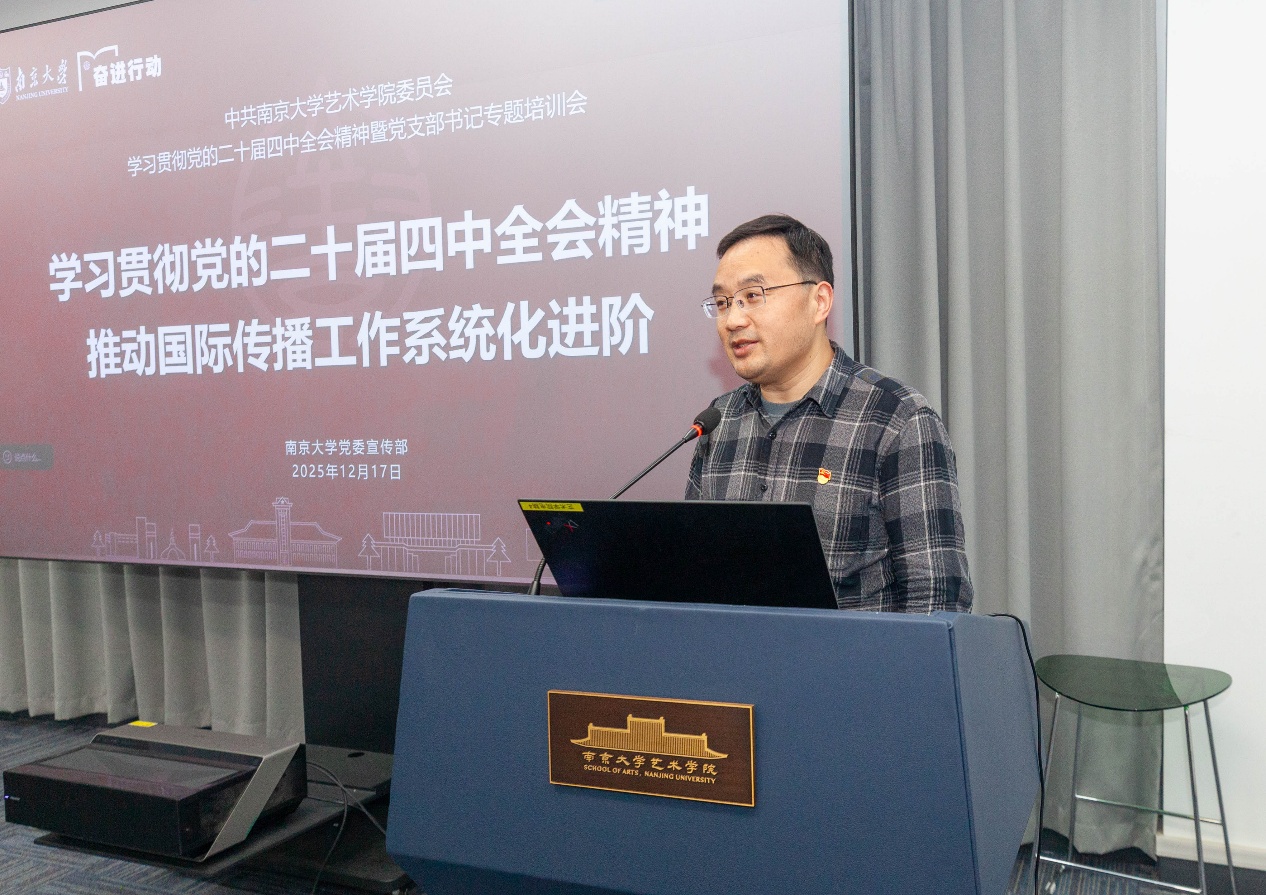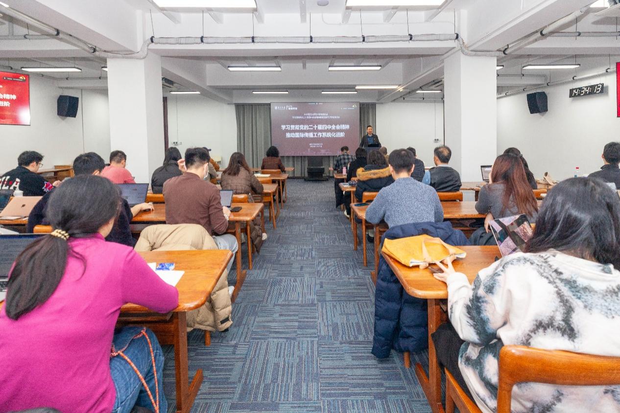 12月17日,国产偷拍 党委举办党的二十届四中全会精神主题党课。国产偷拍 党委常委、党委宣传部部长、党委统战部部长闻羽作题为“学习贯彻党的二十届四中全会精神,推动国际传播工作系统化进阶”的主题党课。国产偷拍 院长赵奎英、副院长尚荣,师生党员、入党积极分子等百余人在鼓楼主会场、浦口分会场及线上云课堂共同参加。课程由学院党委书记周计武主持。