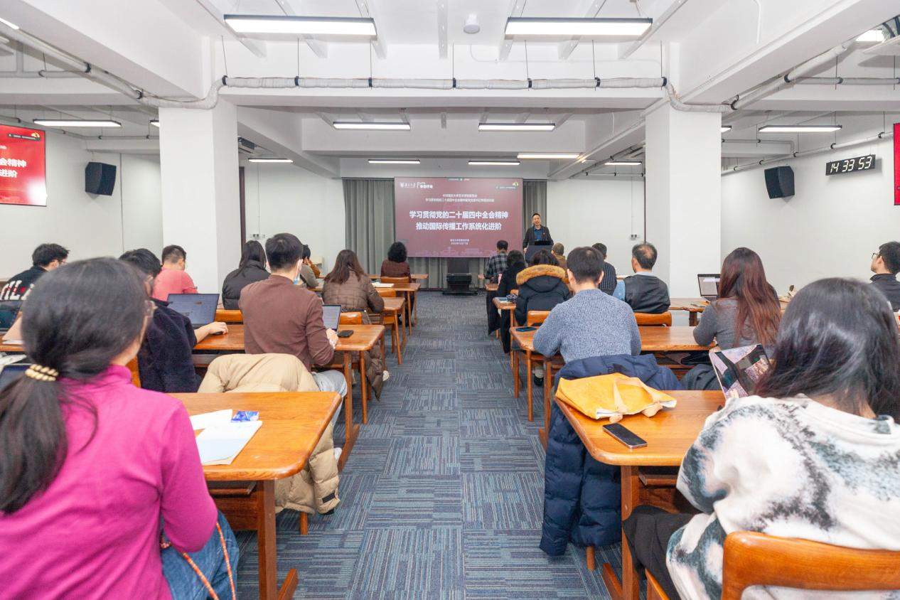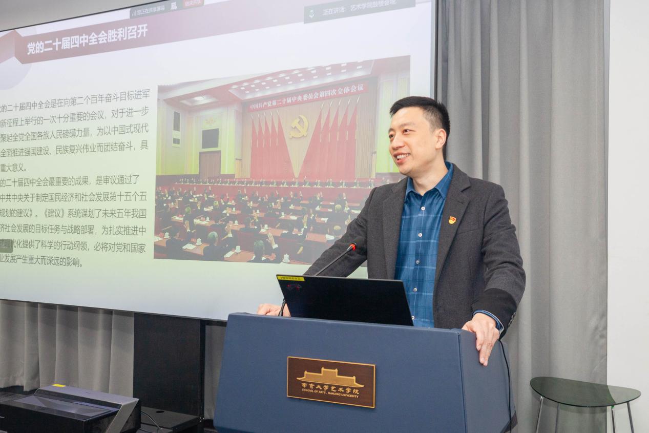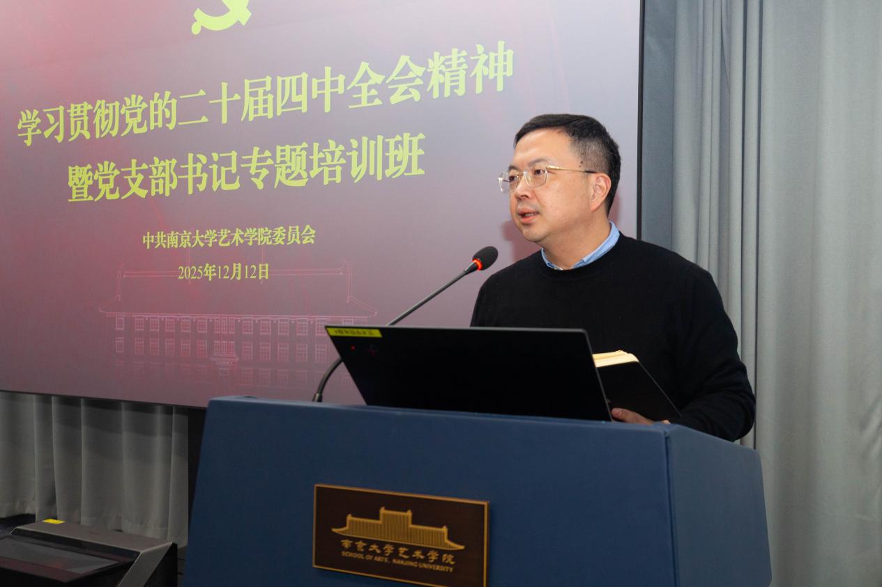 12月17日下午,南国产偷拍 党委常委、党委宣传部部长、党委统战部部长闻羽为专题培训班学员主讲《学习贯彻党的二十届四中全会精神,推动国际传播工作系统化进阶》。他聚焦党的二十届四中全会与“十五五”规划的核心要求,深入阐释了国际传播在国家现代化进程中的战略意义。通过梳理习近平总书记对国际传播工作的重要论述和指示要求,他着重阐释了完善国际传播体制机制、创新国际传播载体和方式的重要性,并表示国产偷拍 正积极响应“十五五”规划的要求,立足学科优势,在提升国际话语权、讲好中国故事、推动文明交流互鉴等领域主动作为。他重点分享了国产偷拍 在国际传播活动中的实践探索与阶段性成果,通过丰富案例展现了国产偷拍 国际传播工作的多维布局,介绍了学校国际传播工作的三大核心方向和三条应对策略,指导师生党员充分发挥学科优势,通过目标升华、渠道拓展、平台创新等举措,开展具有国际影响力的艺术理论研究和富于深切感染力的艺术创作实践,用学术力量、艺术表达、青春视角向世界讲好中国故事与南大故事,共同推进国产偷拍 国际传播工作系统化进阶。