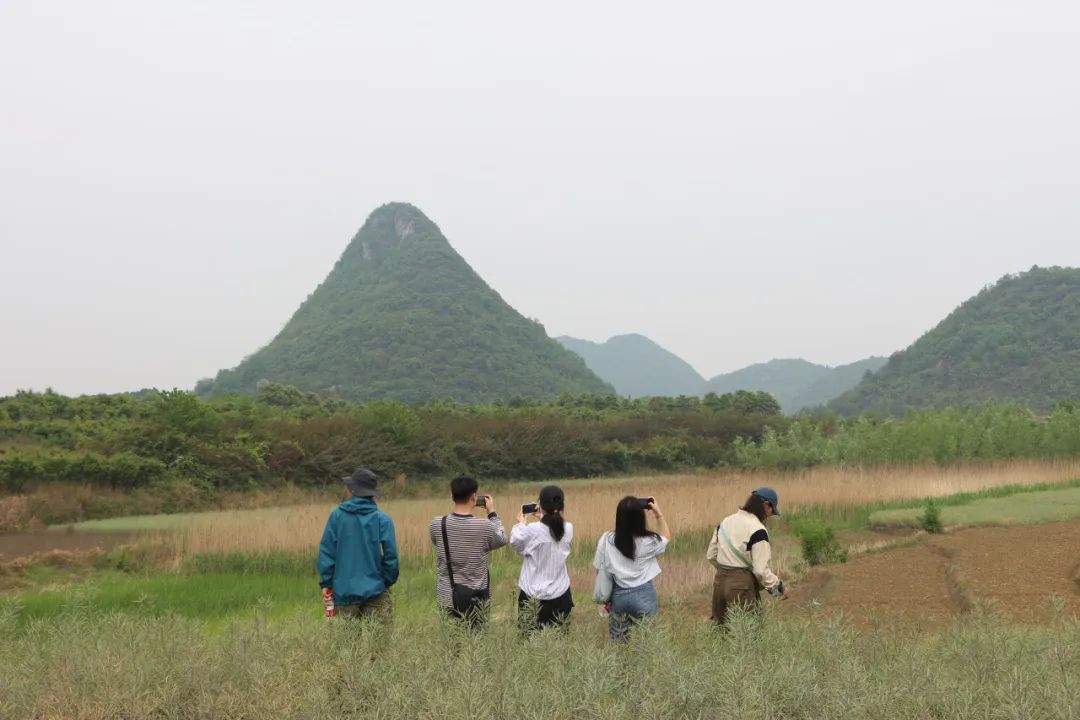 师生一行在右二村村支书王常友、蒙安夕舍民宿主理人王庆能等带领下参观了红枫湖、露营地、晚樱园、茶园、屯堡文化据点等地,熟悉了解右二村及周边情况。这里充满了原生态的自然风光和淳朴民风,在这片宁静土地上,师生们感受到了一种与城市截然不同的氛围,感受着大自然的呼吸,用心观察、细心记录身边的一草一木、一砖一瓦。