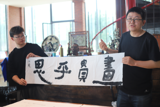 陆老师鼓励在场学生、美术从业者及爱好者:“要时刻谨记认真与坚持,认真可以改变自己,坚持可以改变命运,不是看到了希望才去坚持,而是坚持了才有希望。”最后,陆老师与清镇市的非遗传承人、工艺美术大师、乡村工匠、职教城非遗项目团队就非遗艺术品进行交流。此外,其还受邀到贵州大学开展了一堂艺术交流讲座。