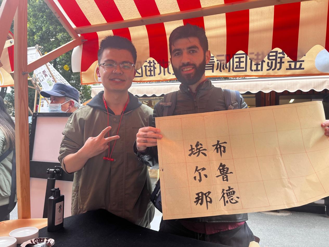 在校内外大型社团展示活动中,书画社也以精心的展台布置和游戏奖品设计吸引了很多观众驻足欣赏和参与。