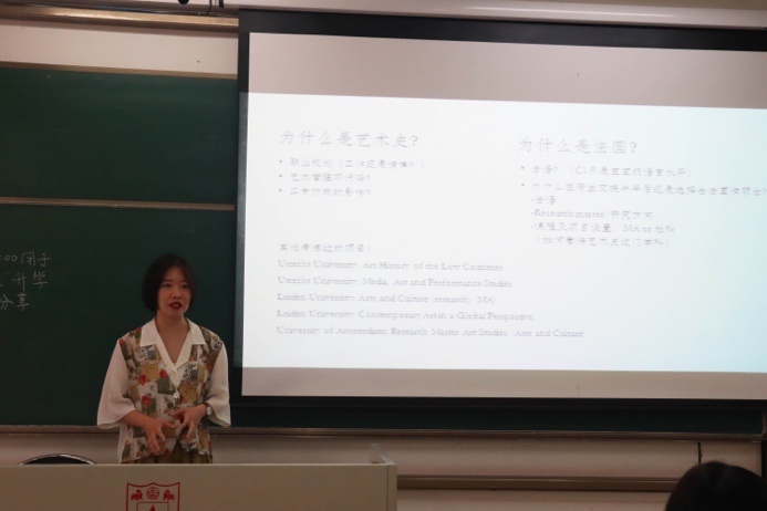 来自文学院的屈伸即将前往纽约大学美术研究所进行艺术史硕士的学习,她分享了大学四年和教授间愉快相处的经历,并且分享了她通过在UC Berkeley一学期的交换如何收获了教授的推荐信。在分享过程中,她强调了多尝试不同实习、多选课、多与教授交流的重要性,也强调了尽早做好大学时期学习生活规划的重要性。同时,她也欢迎越来越多有志于艺术史学习的同学能够加入国产偷拍 的二专学习,在她看来,这能让同学们少走很多弯路。