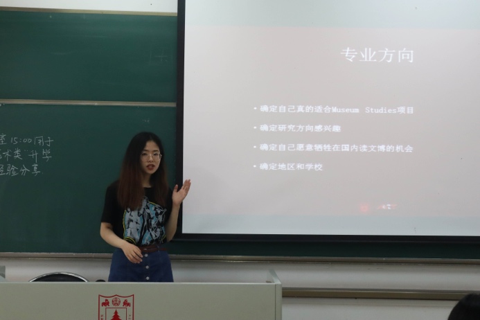 历史学院的蒋涵同学即将赴UCL就读Museum Studies专业,她介绍了申请英国博物馆学相关专业的准备过程,以及在国内和国外就读博物馆专业可能会遇到的不同优势和困难。她建议想要申请相关专业的同学利用课余时间多多参观各种博物馆、参与志愿者活动,有能力的话可以利用学校的资源和平台进行策展活动。