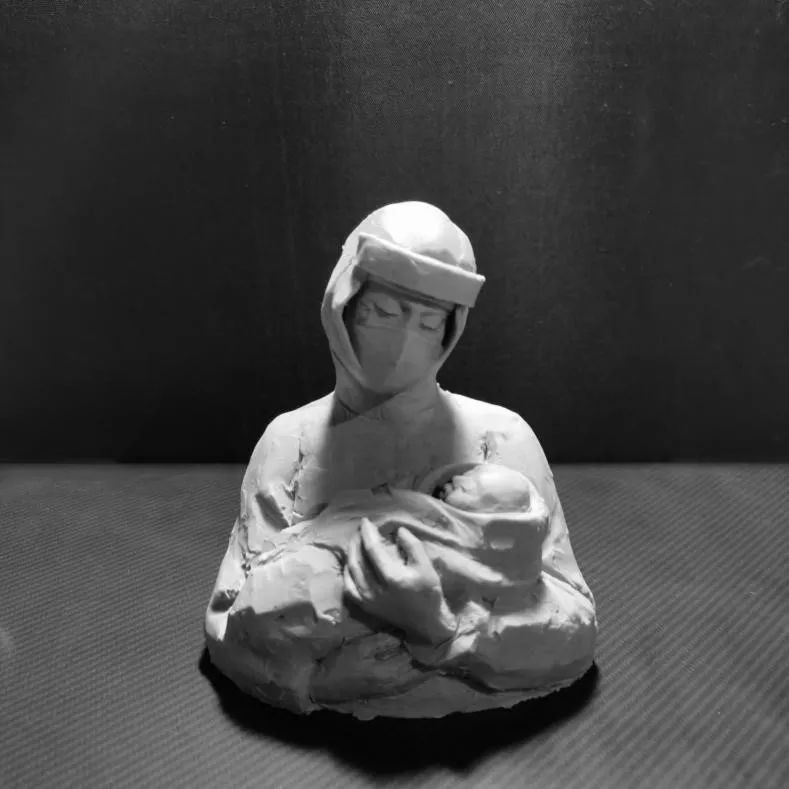 同时,雕塑专业的硕士研究生也创作了抗疫主题的作品,通过他们手中的泥巴和雕塑刀,创作出感情充沛的作品,借助他们生动的语言,让我们一起团结抗疫,致敬英雄。