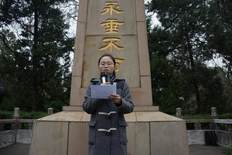 随后,师生代表在纪念碑前默哀致敬一分钟,以崇敬的心情缅怀革命先烈。
