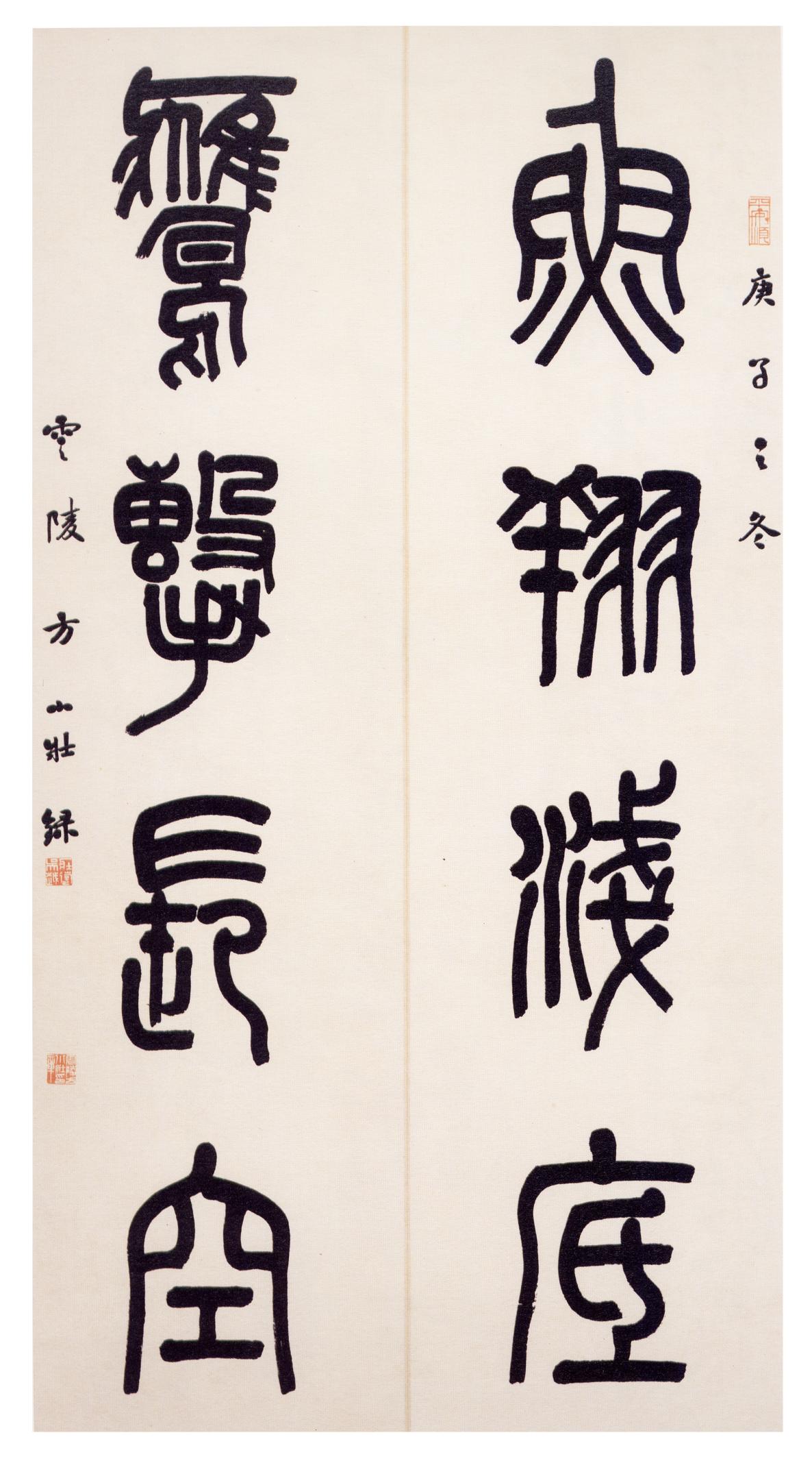 方小壮 《鱼翔·鹰击》纵横138cm×38cm×2