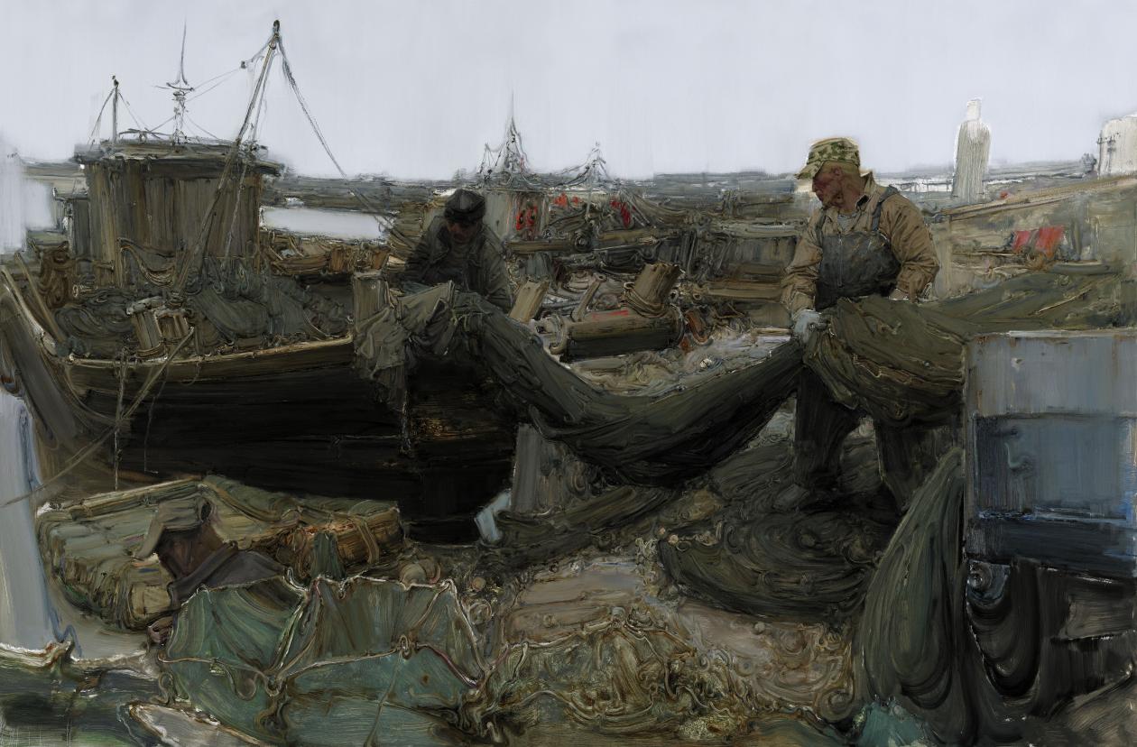 陆庆龙《渔歌》系列之二 布面油画 200cmx300cm 2017年