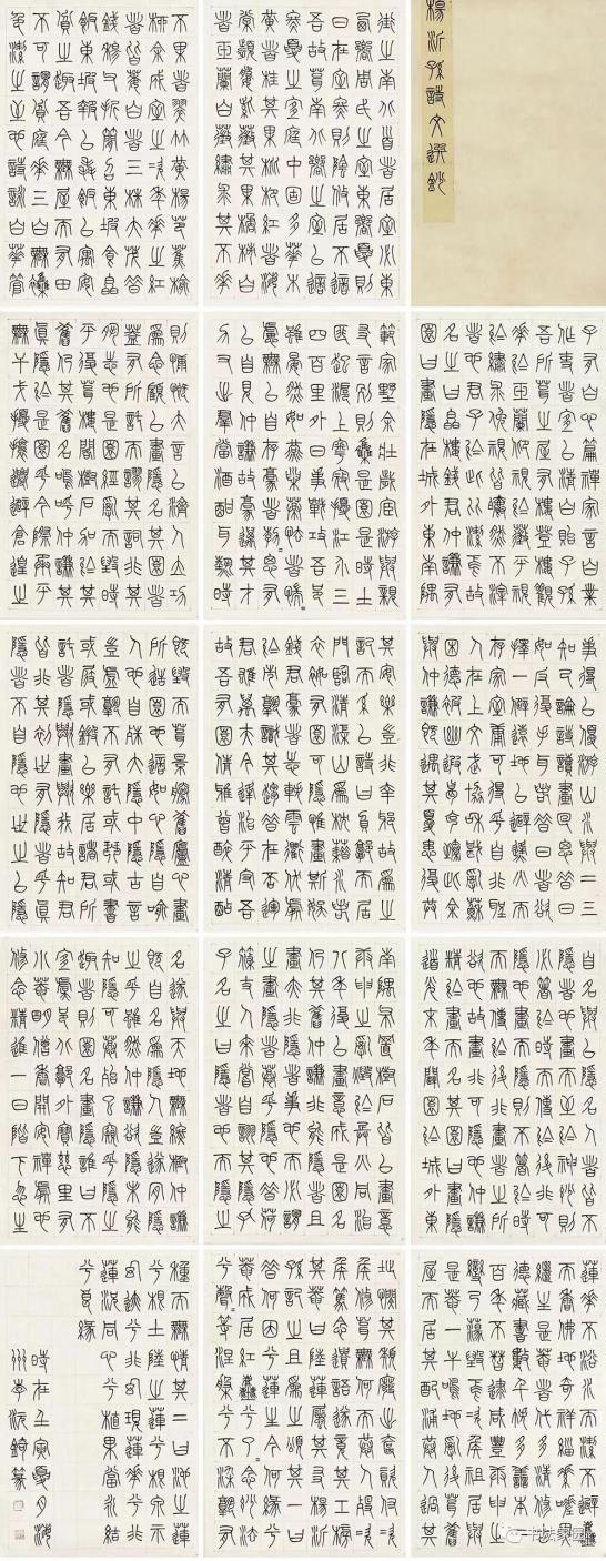 杨沂孙1812-1884),江苏常熟人清代书法家文字学家杨沂孙是在乾嘉余风下成长起来的清代中后期篆书书家代表之一。他认为:“只有将钟鼎彝器铭文的写法与小篆的写法相互参校,古文字书法方能产生新质,方能振兴篆书。”本作创作于2022内容选自杨沂孙著观濠居士遗著》,选用素白绢布作为书写载体正文共14单字大小为3*2.5cm风格上参照了杨沂孙晚期的篆书书风以小篆为根基上溯追古参以两周金文的用笔元素和结字特点,在小篆的婉转流美之中,增添了金文石鼓的整饬静穆。