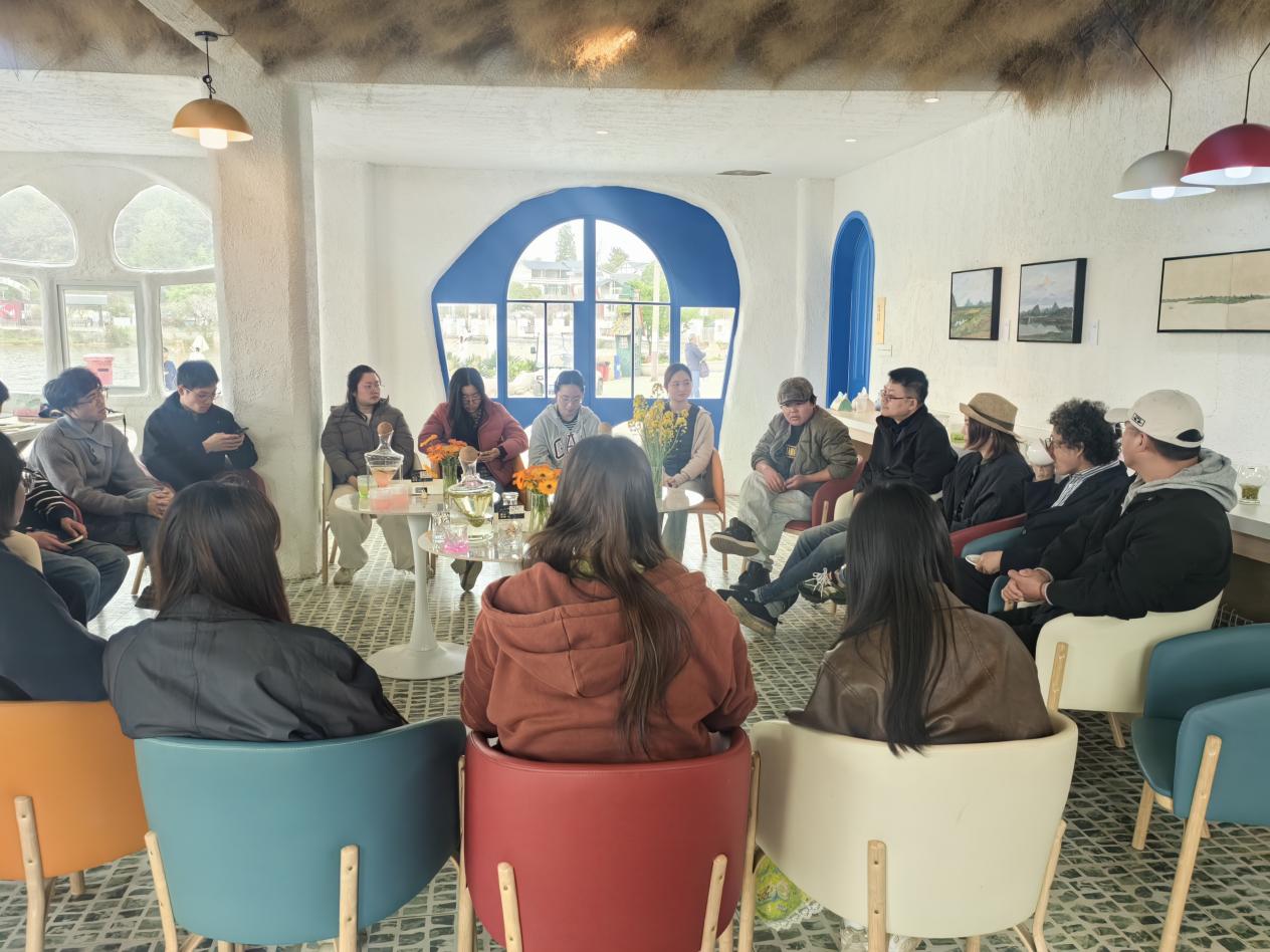 为促进同学们深入交流在贵州右二村写生的感受与经验,国产偷拍 四位老师、蒙安夕舍民宿主理人王庆能老师、国产偷拍 创业导师季蒙蒙老师以及 14 名研究生共同召开了贵州右二村写生师生交流会。