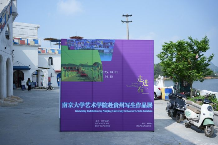 右二村作为学院重要的写生研学基地,见证了诸多艺术创作的美好历程。去年,学院组织师生首次赴贵州右二村写生,师生们从当地的自然风光与风土人情中汲取灵感,创作出大量优秀艺术作品,并在校园内进行展览。今年,学院精选部分写生佳作,在右二村进行展览。此次展览共展出 20件作品,涵盖油画、国画、雕塑三大艺术门类。每一件作品皆是对右二村自然景观、人文生态及乡土文化的深度挖掘与独特艺术表达。