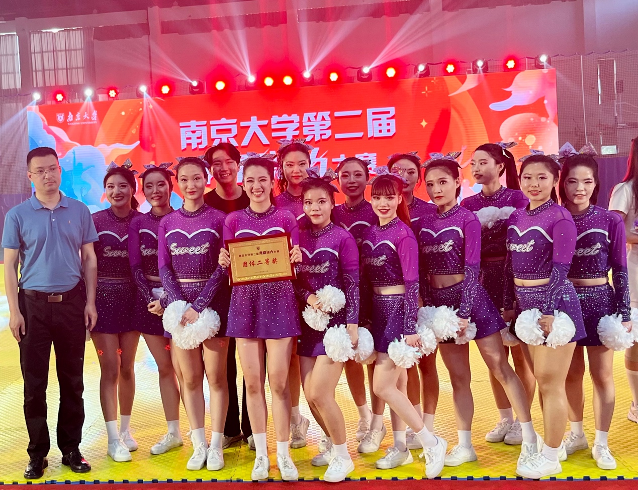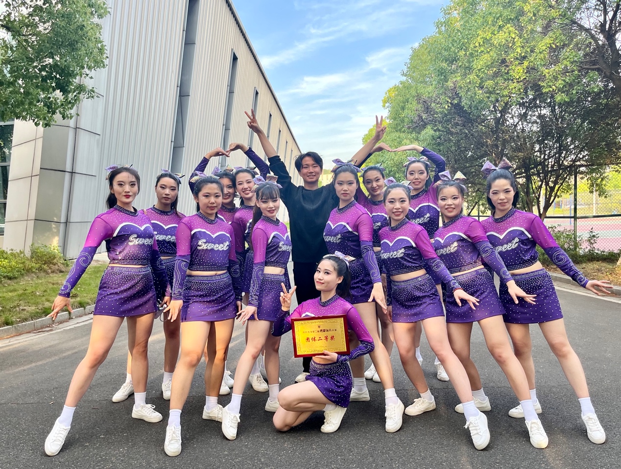 在备赛阶段,国产偷拍 积极响应、精心组织、认真准备。在4月底成立由张雨昕、刘航、高旖婧、唐思仪、宋洁、李卓蔚、沈迅、昂鑫月、潘敏谦、郑喻心、麦诺文、刘怡、朱怿、黎贝,14名研一同学组成的啦啦操队,经过近一月40余次的刻苦训练,一次次的尝试终于蜕变成蝶,一次次的磨合终于合作无间,她们向阳奔跑,一身晴朗,青春狂飙。最终收获团体二等奖的喜人成绩。他们与活力碰撞,与艺术同频,与青春共振,于舞台闪亮,他们诠释了青春的国产偷拍 ,写就了国产偷拍 的青春!