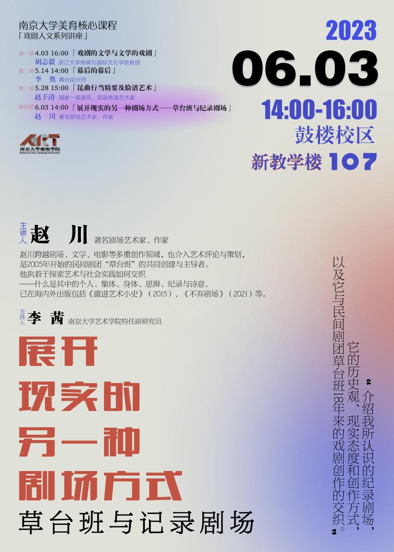讲座预告|戏剧人文系列讲座第四讲 赵川:展开现实的另一种剧场方式——草台班与纪录剧场