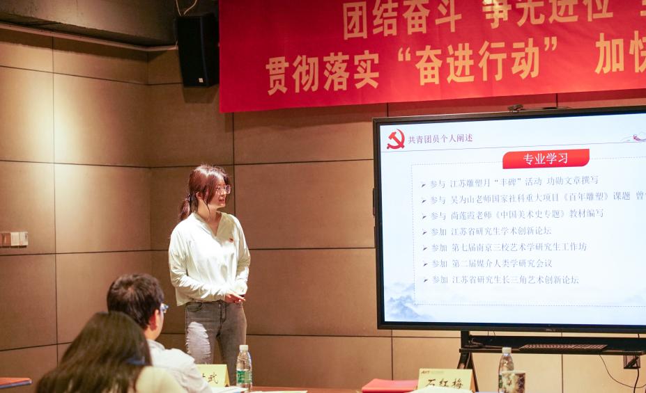 现场问答环节,由现场抽签选定的5名预备党员在个人陈述的基础上,随机抽取一道主观题进行作答,用以考察预备党员对理论知识的理解及个人实践情况。陈雯卿在被问及“结合党员义务谈预备期的表现”时谈到了自己在疫情防控时期对党和政府各类政策的充分理解和信任,并坚持密切联系群众,向群众宣传党的主张,积极向身边的亲人朋友解释相关政策的必要性和意义,鼓励大家相信国家决策。沈一雯汇报了自己是如何在艺术创作、乡村振兴实践中将“伟大建党精神”内化于心、外化于行的。袁旖婳谈到了自己在艺术创作中对新时代中国特色社会主义文艺创作导向的践行,并举出具体案例回答了“如何实现优秀传统文化的创造性转化和创新性发展”的问题。陈静在回答“预备期内如何践行入党誓词,不忘入党初心”的问题时,汇报了自己在预备期内的学习和实践活动,她表示自己时刻不忘党的初心,在艺术创作和集体活动中一心一意为人民服务。陈丹娅结合自己在党支部组织生活中的所学所悟,详细阐释了自己对“文化自信”的理解,又联系专业学习,汇报自己对中国电影发展与铸就中华文化新辉煌之间关系的理解。