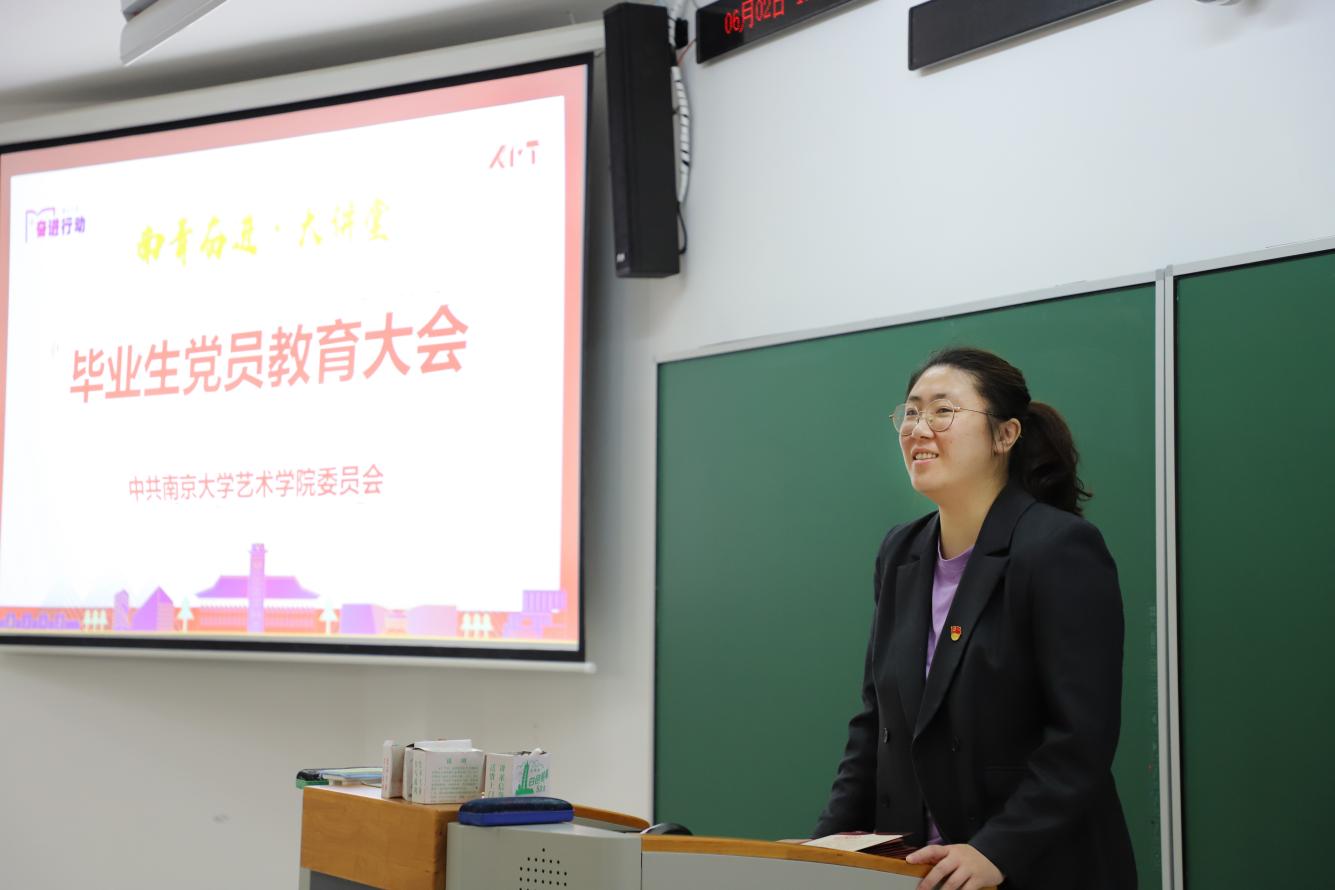 为深入推进学习贯彻习近平新时代中国特色社会主义思想主题教育,进一步加强毕业生党员教育,2023年6月2日,国产偷拍 于鼓楼校区逸夫馆举办“南青奋进”——2023届毕业生党员教育大会。国产偷拍 党委书记石红梅,研究生辅导员周素戎、陈小青,研究生第一、第二党支部全体党员参加此次主题教育大会,2022级党支部部分党员列席本次会议。会议由研究生第二党支部书记王诗晓老师主持。