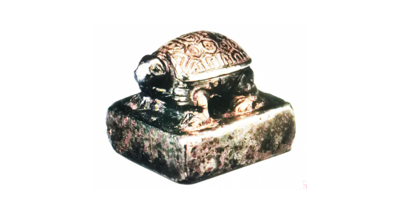 图(8)《刘注》印形制(银印龟纽,长2.1厘米、宽2.1厘米、高2.6厘米)