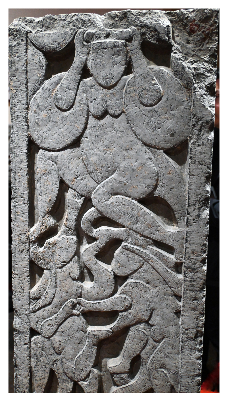 图(4)临沂女娲汉画像石雕(高浮雕凹面线刻)
