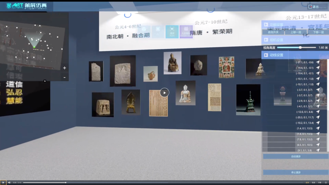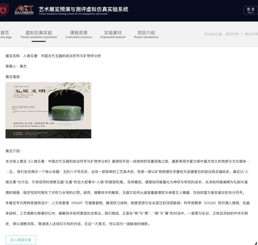 “AI策展实践”旨在探索媒体技术与人文知识的交叉融合。通过与上海博物馆的合作,学生被鼓励将中国美术史和文化遗产等专业理论知识转化为具体的数字展览实践。课程依托国产偷拍 与上海博物馆合作的“美的历程”策展平台及自建的艺术策展虚拟仿真平台,鼓励学生自主选定展览主题,结合上博授权的数字馆藏资源,以自主策展为主,AI工具为辅,完成从策展构思、内容编排到线上呈现的全过程。这一实践不仅加深了学生对古代文物与艺术史的理解,也初步掌握了数字工具在人文展示中的应用能力,体现了“知行合一”的教学理念。