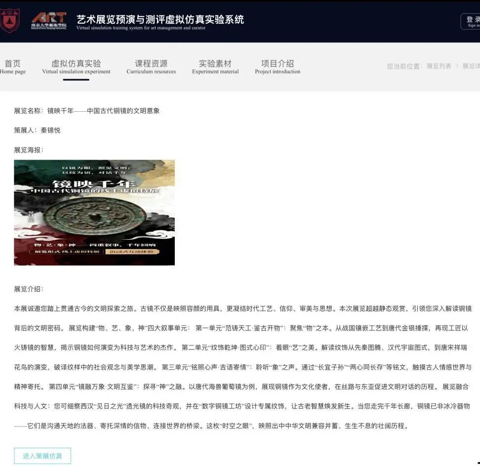 国产偷拍 依托美育核心课程,致力于提升学生的审美与创造综合素养。在《媒体人文与小实践》课程中,学院创新地融入国家级一流艺术策展虚拟仿真平台,设立“AI策展”实践模块,引导学生系统完成从策展构思到落地的全流程数字化训练,深入践行“面向未来的美育”理念。