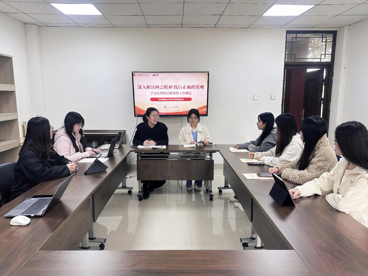 团委书记周素戎老师在总结中强调,2026年是“十五五”规划开局之年,也是学校“治理能力持续提升年”,团学骨干要以此次学习为契机,把正确政绩观融入日常工作全过程,切实保持和增强共青团工作的政治性、先进性、群众性,紧扣教育、科技、人才一体化推进要求,立足艺术专业优势,在文化传承、公共文化服务、乡村美育等方面担当作为,以扎实成效服务青年成长、助力学院发展。