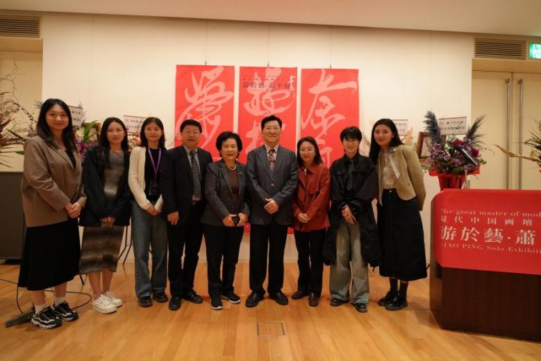 研修团还出席了江苏省著名书法家、国产偷拍 缪斯基金艺术顾问萧平“游于艺”书画展,国产偷拍 黄正明教授致辞,庆祝本次海外展览顺利举行,也表示在与萧平先生同行的文化研修之旅中全体师生收获良多。