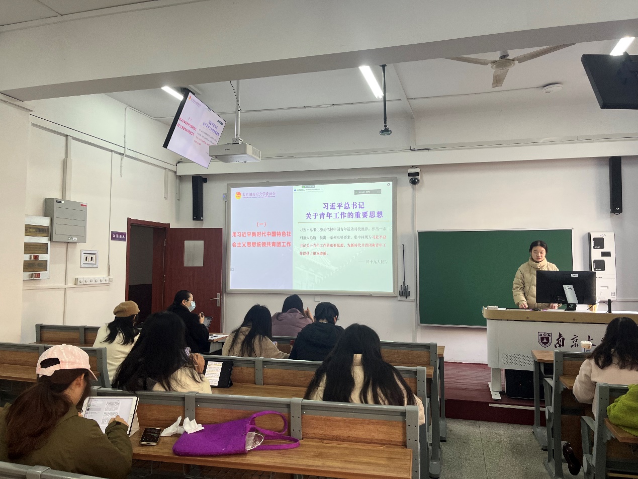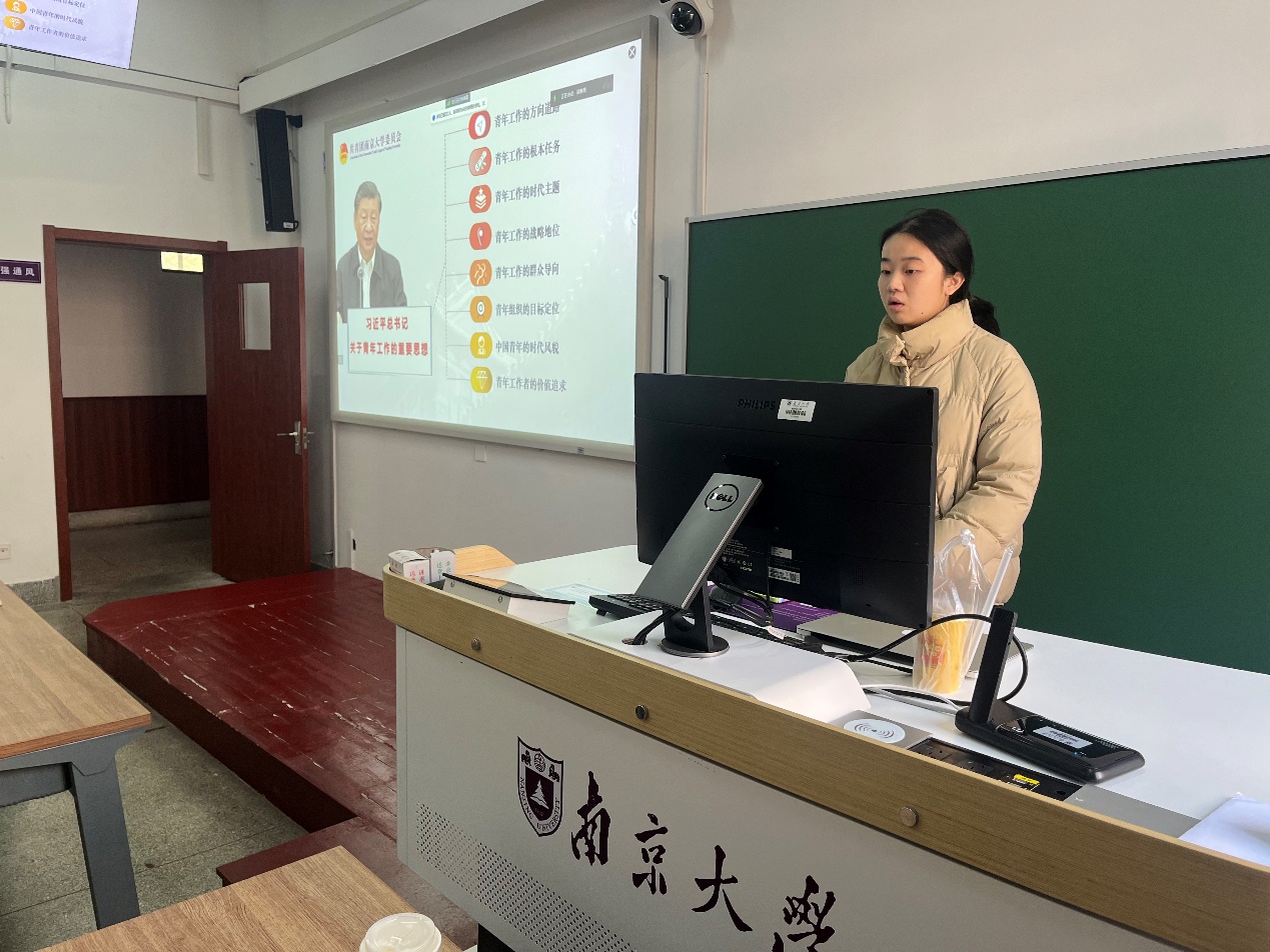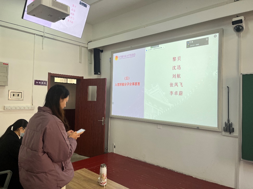 在此之后,黎贝、沈迅、刘航、张凤飞与李卓蔚五位入党积极分子分别分享了本次团日活动的学习心得。青年是民族和希望,她们指出,作为共青团员的我们应善于学习本专业,勇于开拓进取,用实际行动把个人理想融入国家利益,把自身价值融入社会价值。历史的重担赋予了青年,青年人应拓当代之新,征途永无止境。广大青年在科技创新、乡村振兴等方面应展现排头兵作用,成为时代的生产军。