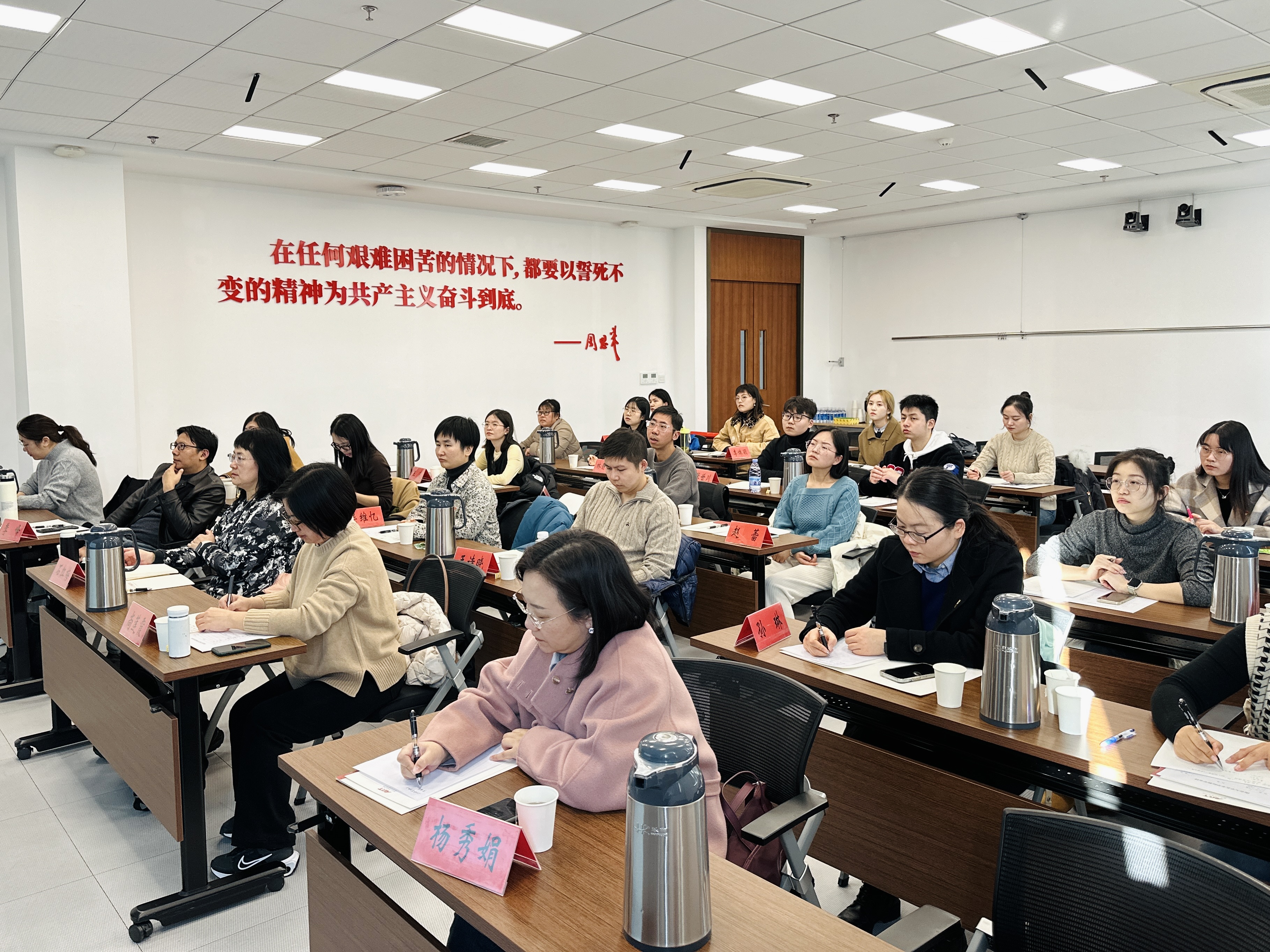 11月24日下午,恩来干部学院教师马超为专题培训班学员主讲《细微之处见精神——魅力周恩来的真情实感》专题讲座。周恩来在求学过程中,逐渐接触、了解、树立了共产主义理想,成为党和国家的第一代领导核心。在纪念周恩来同志诞辰120周年座谈会上,习总书记不吝以光荣、不朽、楷模等词汇赞扬和缅怀周恩来。现在我们一般称周恩来为伟大的革命家、政治家、军事家、外交家,但此次讲座,马超从四个不同纬度切入,让我们认识了一个更为鲜活、更富情感的周恩来形象。
