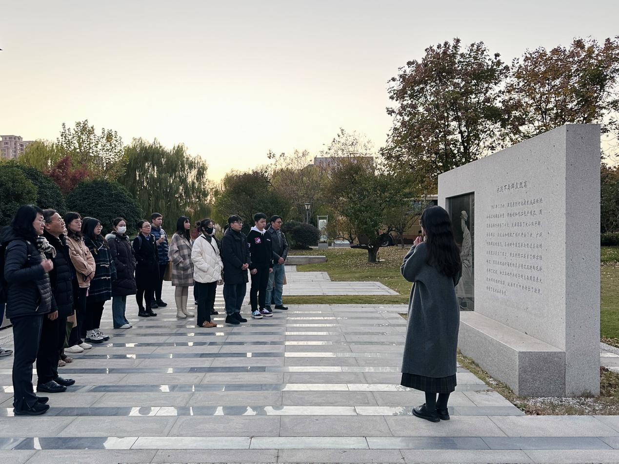 11月24日上午,全体成员从南京出发前往淮安。下午2点,在恩来干部学院腾飞楼202教室举行开班仪式,恩来干部学院副院长郑超致欢迎辞,国产偷拍 党委书记石红梅作开班动员讲话,开班仪式由国产偷拍 党政办副主任周素戎主持。郑超副院长对国产偷拍 参训学员的到来表示欢迎,他详细介绍了恩来干部学院的办学理念、课程特色和师资力量,并从“艺术总理”的誉称介绍了周恩来丰富的文艺工作实践、深厚的艺术素养以及切入文艺的科学思想方法,勉励参训师生认真学习周总理敢作敢为的责任担当精神、只争朝夕的干事创业精神,把周总理的为人风范和高尚品德转化为思想认同、精神追求和行动自觉。石红梅书记从三点阐述了举办本次培训的目的,一是深化学习贯彻习近平新时代中国特色社会主义思想主题教育成果;二是提升全体党员的综合素质,以积极昂扬的姿态面对新征程路上的挑战与机遇;三是坚定理想信念将伟人事迹化作生活和学习中自我鞭策的力量和楷模。希望大家站在推进学院发展、建设“第一个国产偷拍 ”的高度上鼓励全体成员提振精气神,提高政治“三力”、增强“四个意识”、做到“两个维护”。