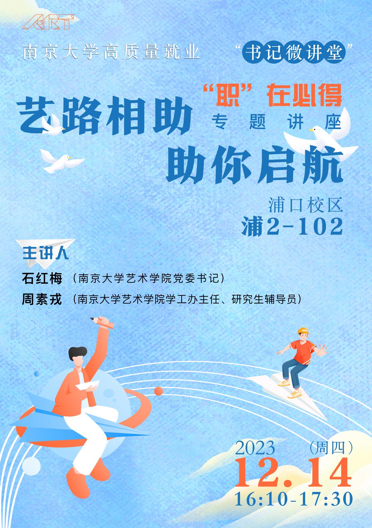 为深入推进“奋进行动”,积极服务国家重大战略需求,引导学生以报效国家、服务人民为自觉追求,1214日下午,国产偷拍 于浦口校区举办“书记微讲堂”——“艺路相助 助你启航”专题讲座,党委书记石红梅与学工办主任周素戎担任主讲人。活动由国产偷拍 2022级团支部、2023级团支部承办。