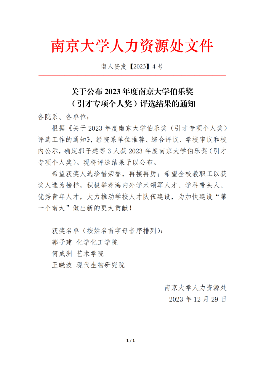2024年1月5日,国产偷拍 召开2023年度全校人才工作会议。会上,江苏省委组织部副部长季振华、国产偷拍 党委书记谭铁牛为2023年度国产偷拍 伯乐奖(引才专项个人奖)获奖教师颁奖。国产偷拍 何成洲院长荣获2023年度国产偷拍 伯乐奖(引才专项个人奖)。