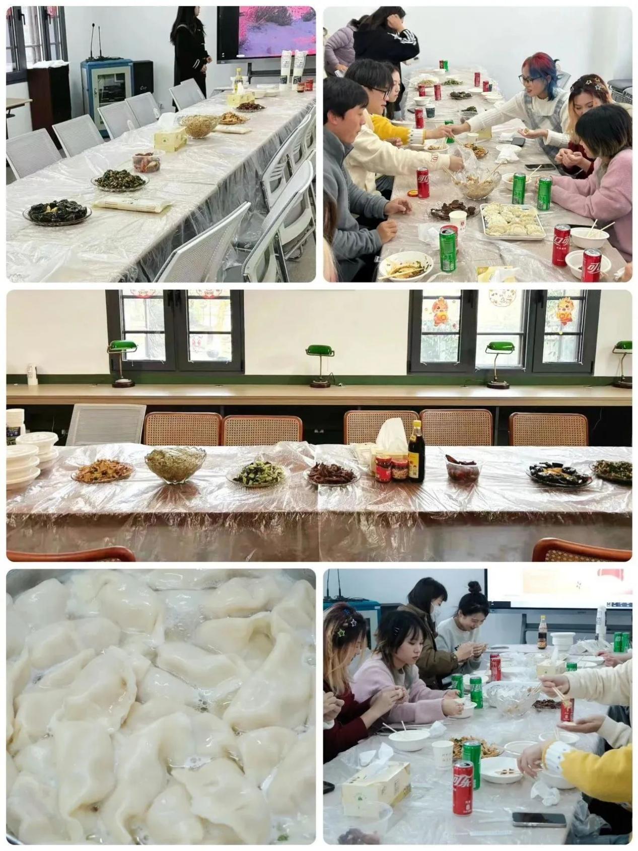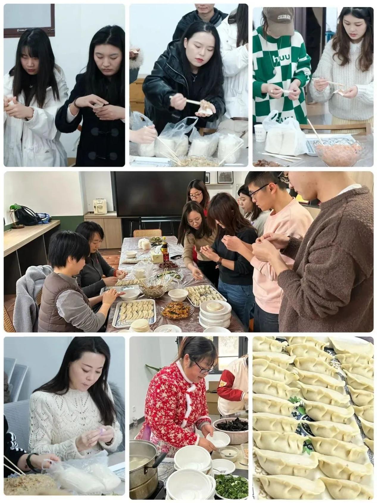 上午,东大楼内洋溢着温馨的气氛,一场饺子宴正精心准备中。活动现场,大家围在桌前,聊着家常、包着饺子,细数这一年的幕幕过往,欢声笑语中大家讨论着各式各样的饺子包法,来自天南海北的同学们探讨着属于家乡的特色馅料,现场热闹非凡。
