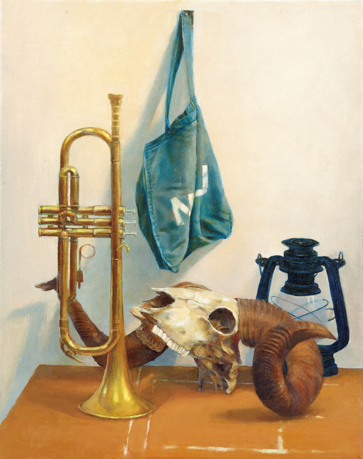 绘画类 甲组 二等奖 《有盘羊头和小号的静物》 孟言(指导教师:杨秀娟)